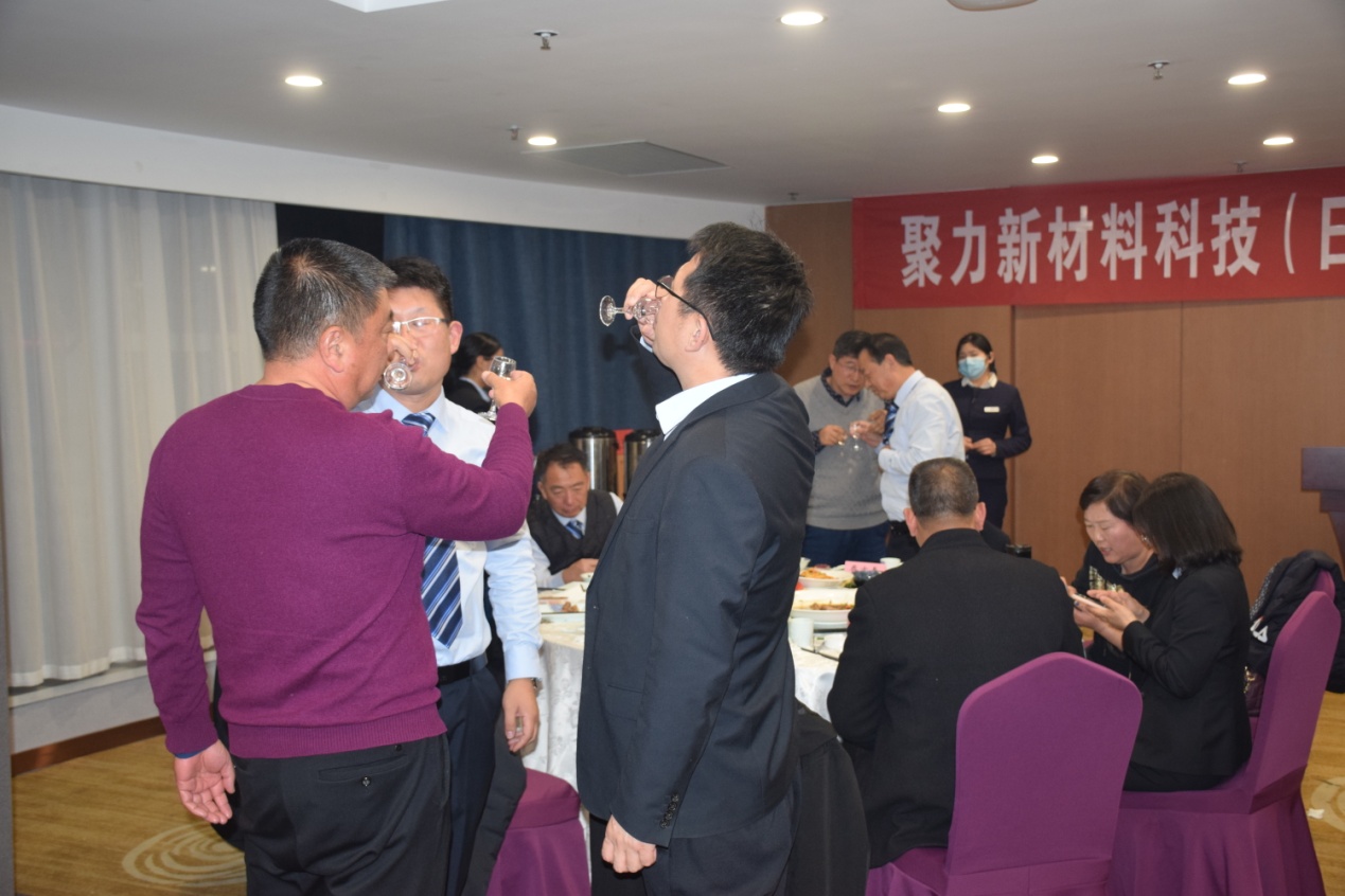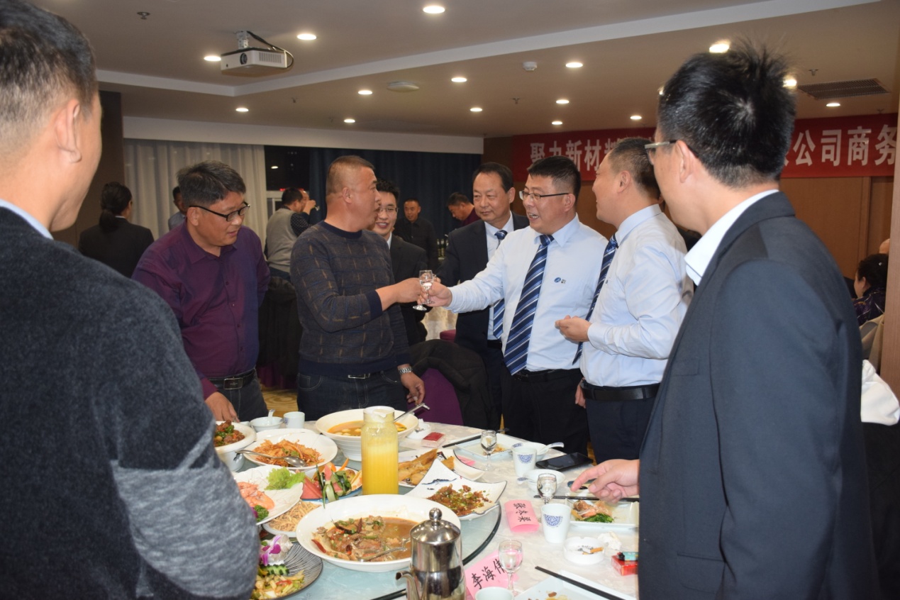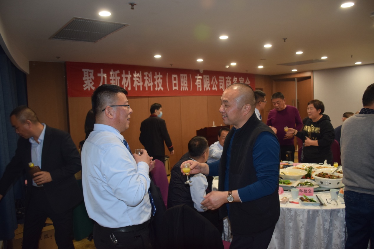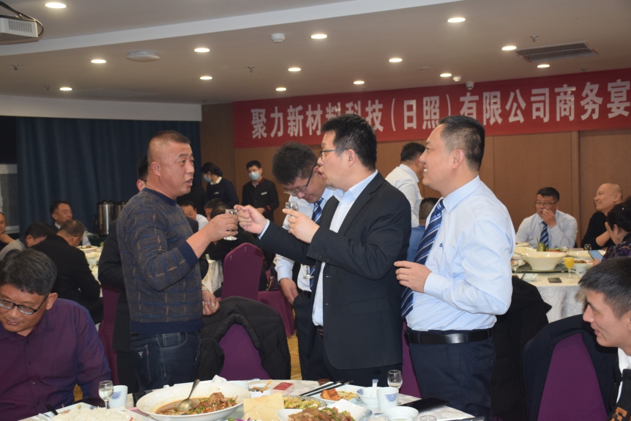 古人云“有朋自遠方來,不亦樂乎”,12日晚,公司在日照君臨天下大酒店舉行了隆重的歡迎晚宴。宴會上來自江蘇、山東兩地的客商與公司高管及業務團隊推杯換盞,觥籌交錯,公司常務副總陳玉剛代表公司致歡迎詞,對百忙之中撥冗蒞臨聚力新材料科技(日照)有限公司商務宴會的客商表示親切的問候和熱烈的歡迎! 并對所有關心、支持山東聚力集團發展的各界朋友致以崇高的敬意!