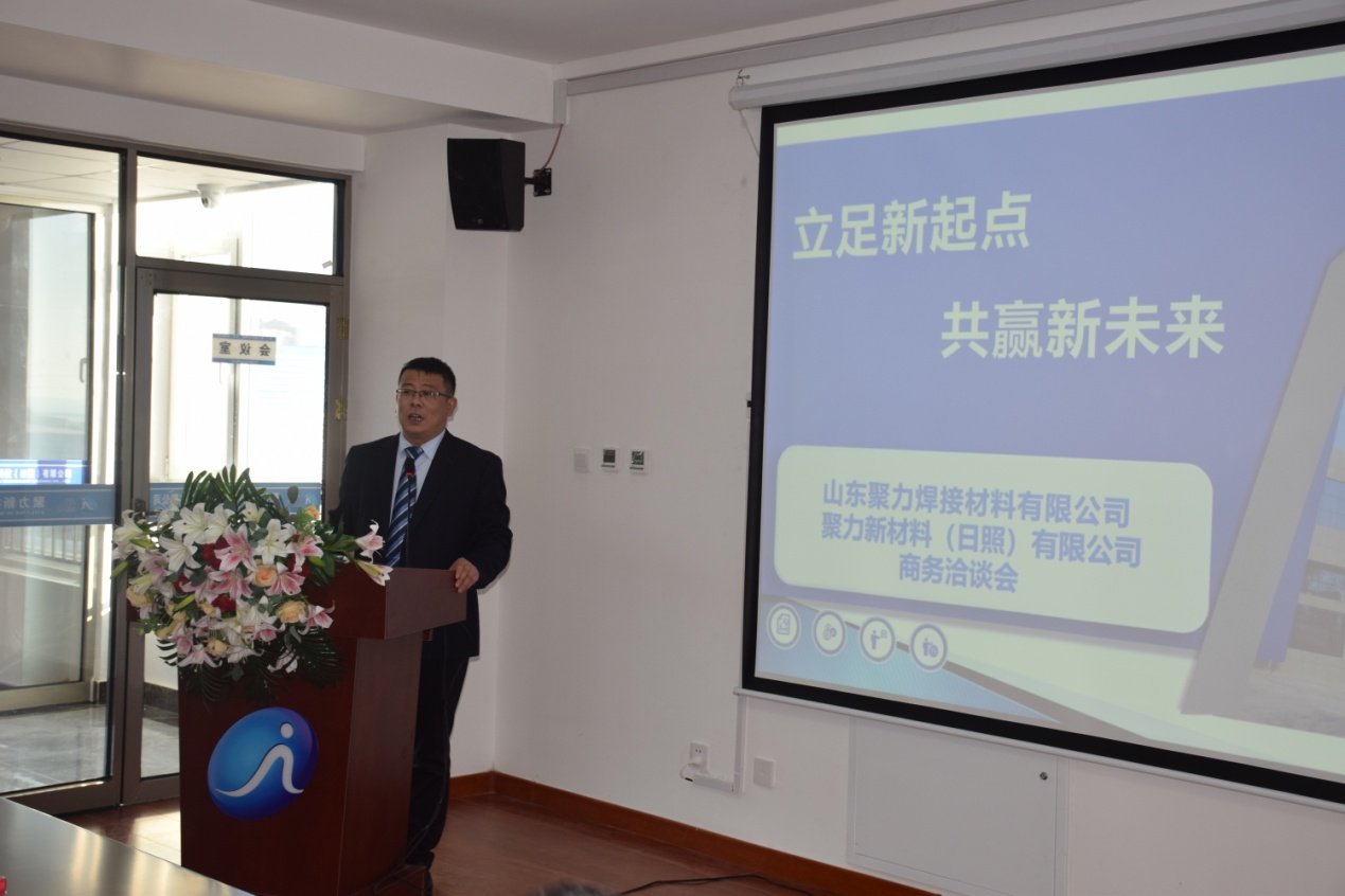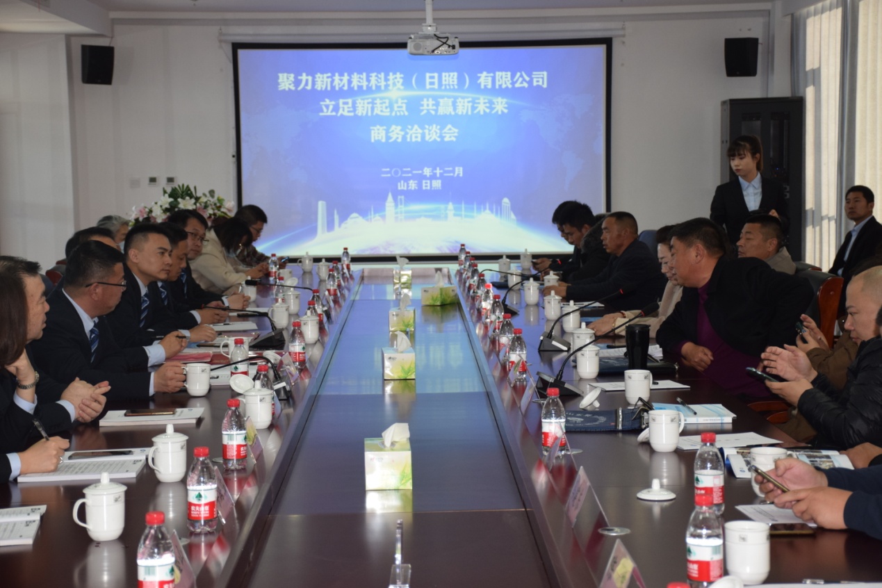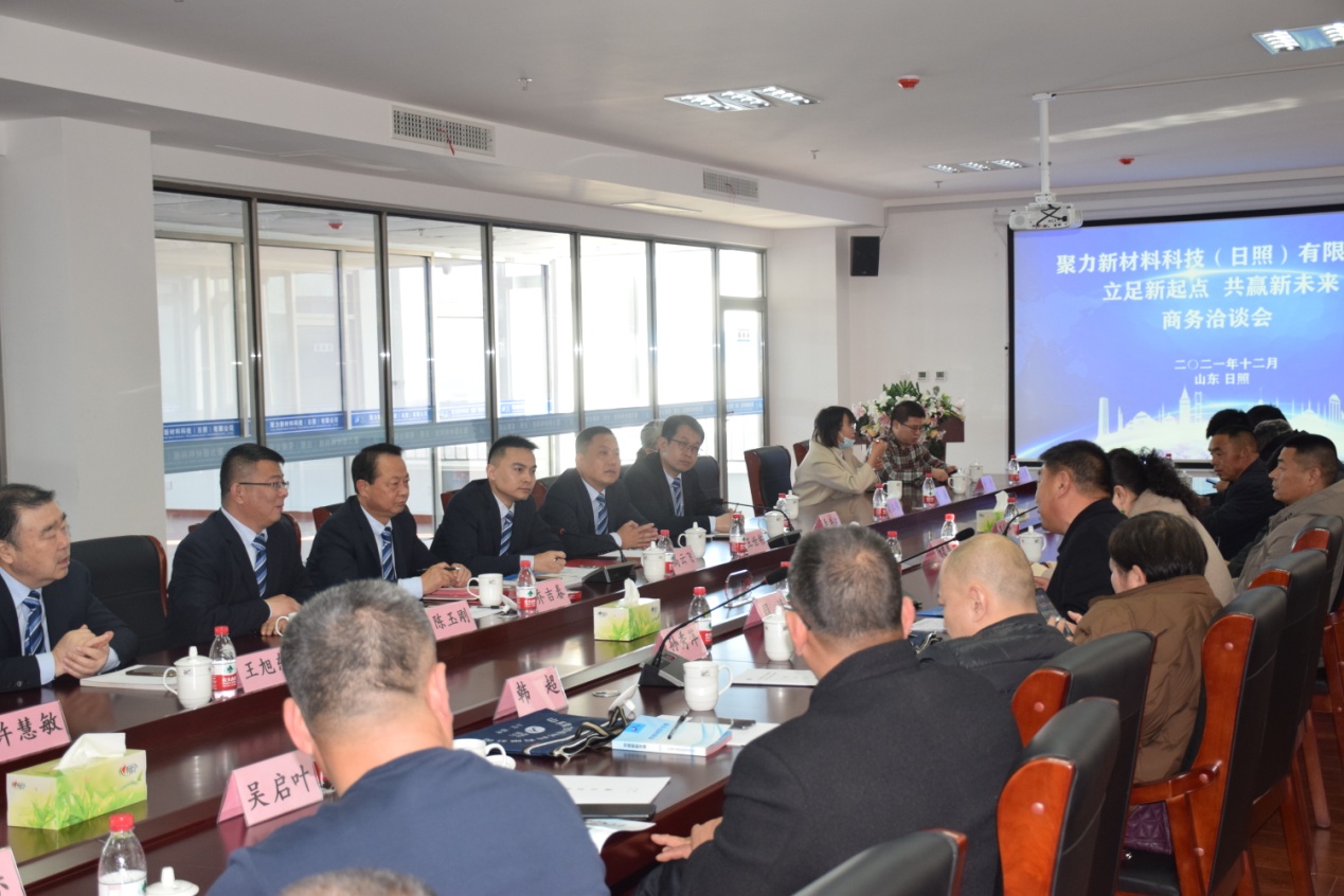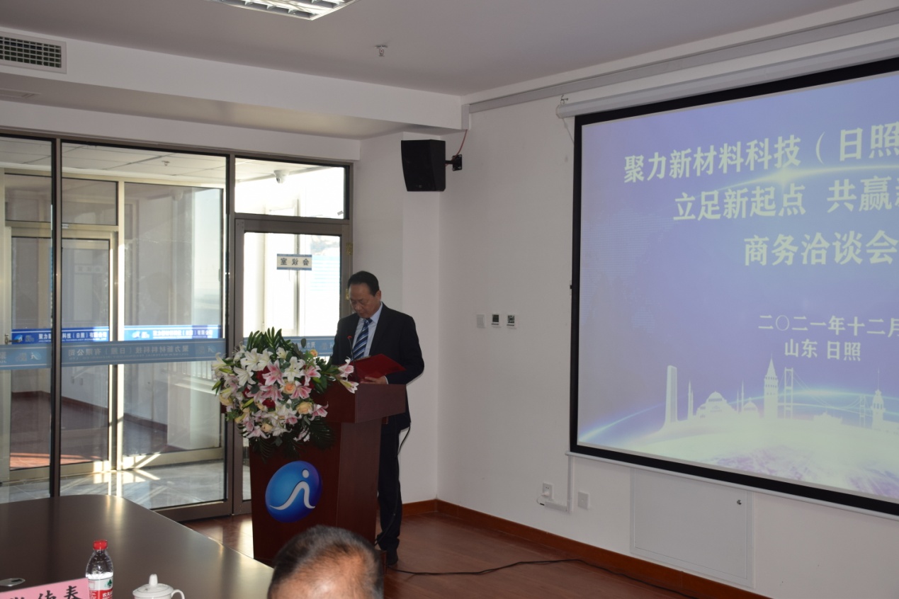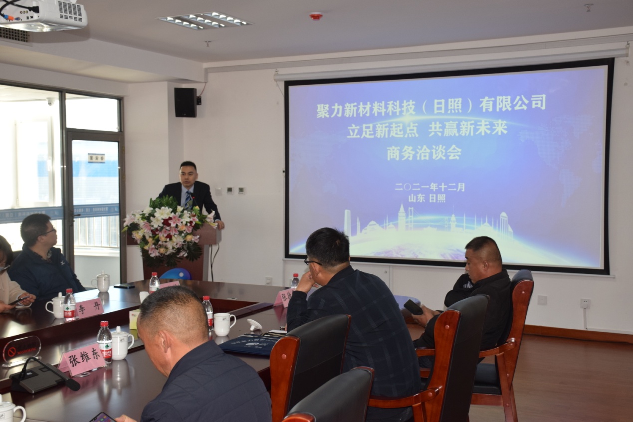 2021年12月13日上午9點,聚力新材料科技(日照)有限公司“立足新起點、共贏新未來”商務洽談會在聚力日照公司新落成投入使用的辦公大樓準時召開,會議由公司副總經理高云飛主持,公司副董事長、日照公司總經理喬吉春致歡迎詞。